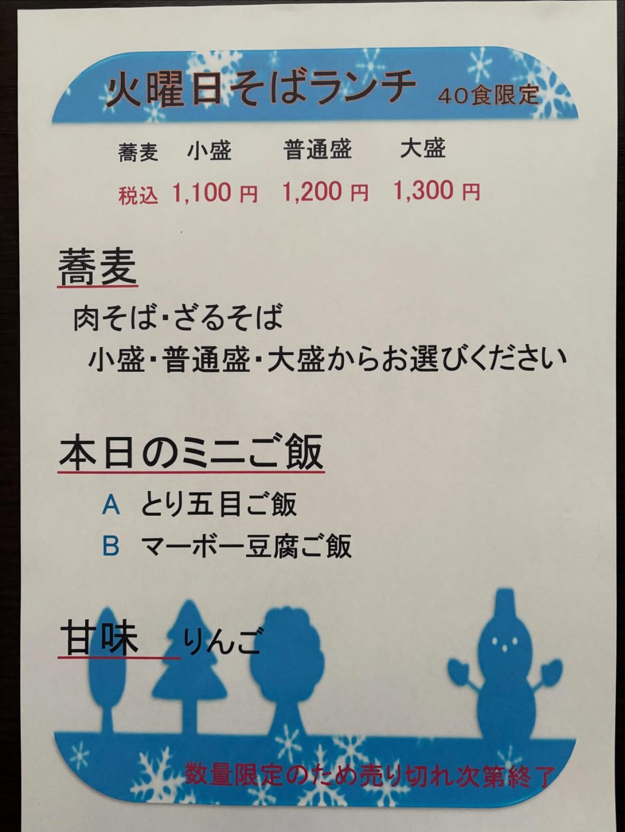 いつもありがとうございます 火曜日そばランチです 本日のミニご飯