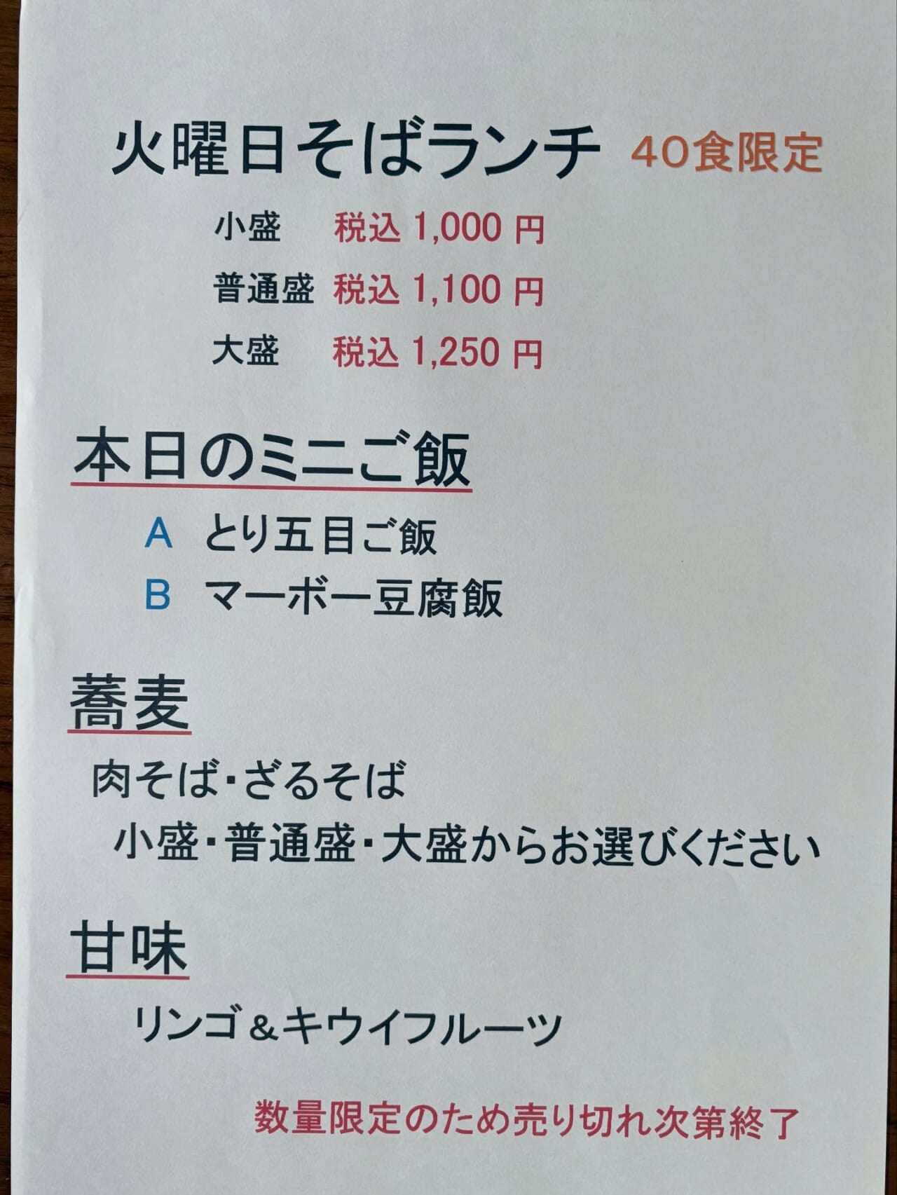 火曜日そばランチです